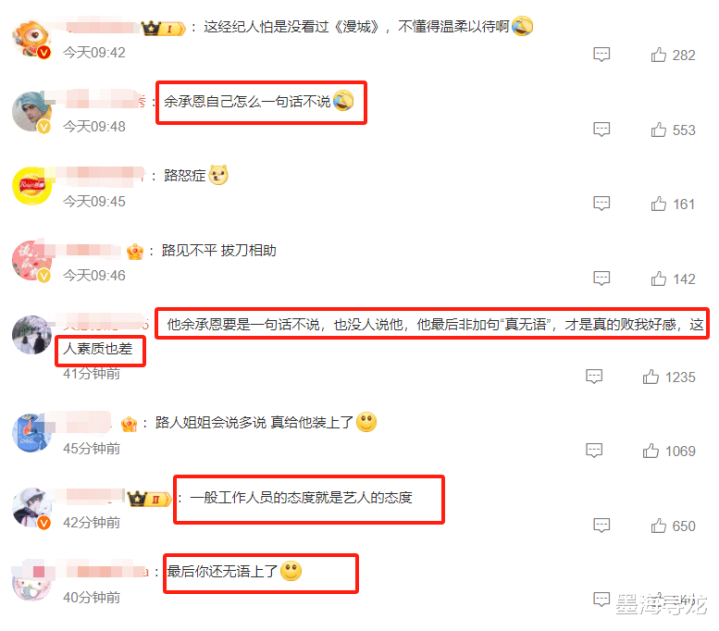 据现场目击者透露,余承恩在结束某品牌活动后,被多名粉丝围堵在酒店电梯口等待合影,团队成员态度傲慢地大吼“让开”。更离谱的是,面对路人的怒怼,余承恩不仅没有认识到错误,反而暴出一句“真无语”的雷人言论。事件曝光后,评论区瞬间涌入上千条声讨:“当红艺人就是这样对待衣食父母的?”“连句道歉都没有,心虚什么?”